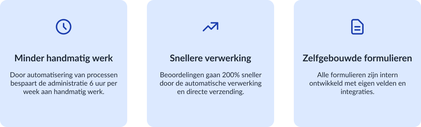 - Beoordelingen en verslagen gaan automatisch naar de juiste ontvangers en vragen geen handmatige acties meer.