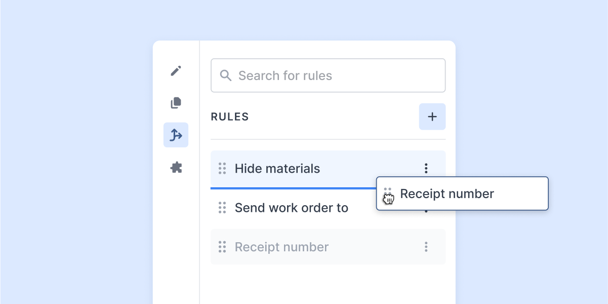 Diga olá a formulários mais avançados! As regras são a maneira perfeita de aplicar a lógica condicional aos seus formulários. Nosso recurso aprimorado permite que você mostre ou oculte campos sem escrever código. Todas as suas regras são exibidas claramente na Plataforma, e seu conteúdo é mais visual.